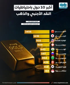 وضمّت القائمة أيضًا كوريا الجنوبية بـ 418 مليار دولار، وسنغافورة بـ 384 مليار دولار، إضافة إلى دول أوروبية كبرى مثل ألمانيا وإيطاليا وفرنسا، إلى جانب البرازيل والإمارات التي سجلت احتياطيات قدرها 238 مليار دولار.