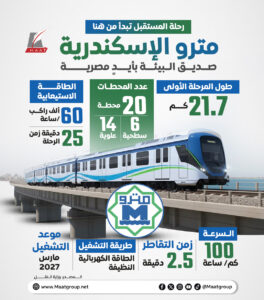 تواصل مصر تأسيس بنية قوية بجميع المحافظات، ومن بين هذه المشروعات الجاري تنفيذها حاليًا، هو مشروع مترو الإسكندرية والذي يمتد من محطة سكة حديد أبو قير وحتى محطة مصر بالإسكندرية بطول إجمالي يبلغ 21.7 كم، منها 6.5 كم سطحية في المسافة من محطة مصر حتى ما قبل محطة الظاهرية، ثم مسار علوي بطول 15.2 كم حتى محطة أبو قير.