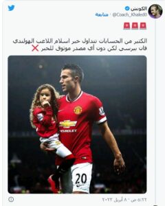 ونشر حساب “الكوتش” المختص في متابعة الشؤون الرياضية عبر تويتر، أمس السبت تغريدة جاء فيها: “الكثير من الحسابات تتداول خبر اسلام اللاعب الهولندي فان بيرسي لكن دون أي مصدر موثوق للخبر. لو صح الخبر فندعوا الله أن يثبته على الحق”.