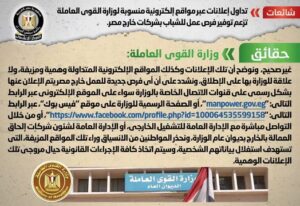 أوضح المركز الإعلامي لمجلس الوزراء، حقيقة ما تداولته بعض المواقع الإلكترونية من إعلانات منسوبة لوزارة القوى العاملة؛ تزعم توفير فرص عمل للشباب بشركات خارج مصر.