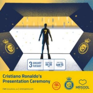 ومن المقرر أن يرتدي النجم البرتغالي قميص النصر أثناء تقديمه، مع إلقاء كلمة للجماهير، في الحفل الذي سيتمر لقرابة الساعتين.