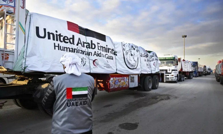 عبرت 45 شاحنة مساعدات إماراتية من ميناء رفح البري إلى معبر كرم أبو سالم التجاري، محمّلة بنحو 900 طن من المواد الغذائية والإيوائية، ضمن عملية “الفارس الشهم 3” التي تُشرف عليها الإمارات لتقديم الدعم العاجل لسكان غزة.