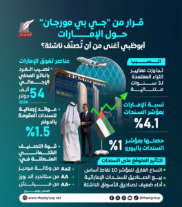 وبحسب بلومبرج، يعكس القرار اعترافًا بأن نصيب الفرد من الدخل في الإمارات، إضافة إلى مستوى تكاليف المعيشة، باتا عند مستويات الأسواق المتقدمة — وهما معياران رئيسيان يعتمدهما جيه بي مورغان.