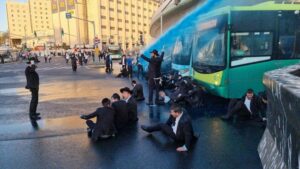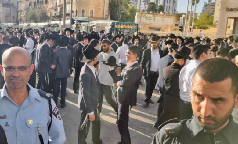 وتجمع مئات المتديّنين اليهود قرب المحطة المركزية في المدينة وأغلقوا الطريق العام، للتعبير عن رفضهم لمحاولات فرض الخدمة العسكري الإجبارية عليهم، فيما استخدمت الشرطة القوة لفض التظاهرة.