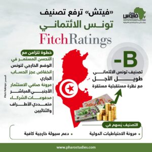 رفعت وكالة فيتش للتصنيف الائتماني، تصنيف تونس إلى مستوى “B-” مع نظرة مستقبلية مستقرة، وهو التصنيف الذي يعكس تحسناً في الوضع الخارجي لتونس مع انخفاض عجز حساب المعاملات الجارية ومرونة صافي استثمار رأس المال الأجنبي المباشر، وفق إنفوجراف لـ”مركز فاروس للدراسات الاستراتيجية والسياسات”.