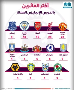 يونايتد والريدز أكثر الفائزين بالدوري الإنجليزي الممتاز | إنفوجراف